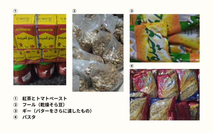 1BOX = 1000EGP(5000円ほど)で調達し、砂糖、米、パスタ、豆などに加えて、鶏肉を入れます。