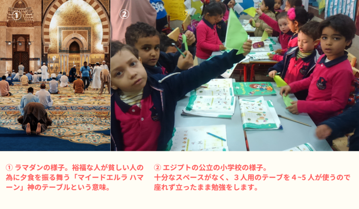 *エジプトで年に一回開催される(今年は2024年3月)一大イベント、それが"ラマダン"です。ひと月の間、お昼の時間(日の出から日没まで)断食を行い、食の恵や生命に感謝するイスラム教の行事です。