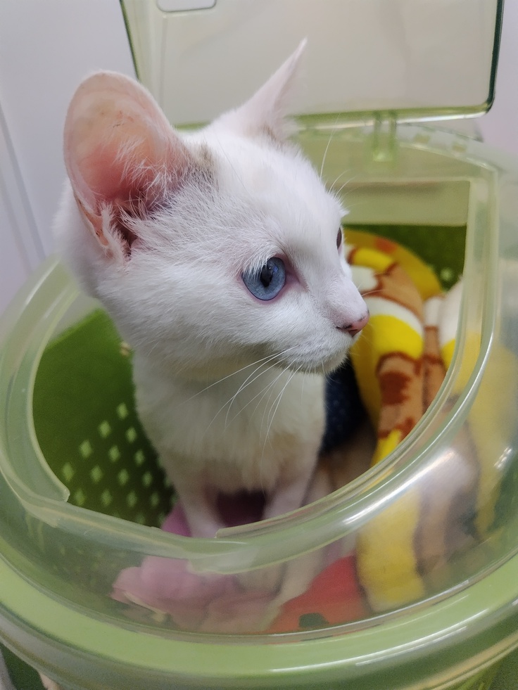 待ち合いがわんちゃんでいっぱいだったので、猫ちゃん用の小部屋にいたのですが、外のわんちゃんの声が気になる〜