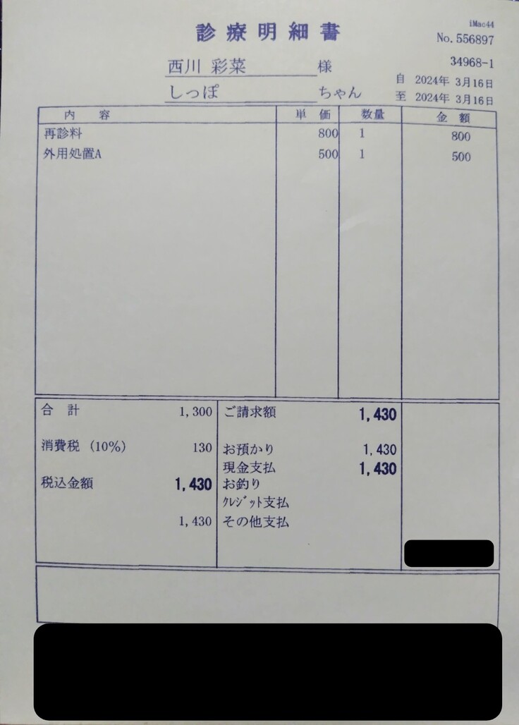 経過は良好なのですが、傷の赤みが引ききらず、念のため来週もう一度診ていただくことになりました。