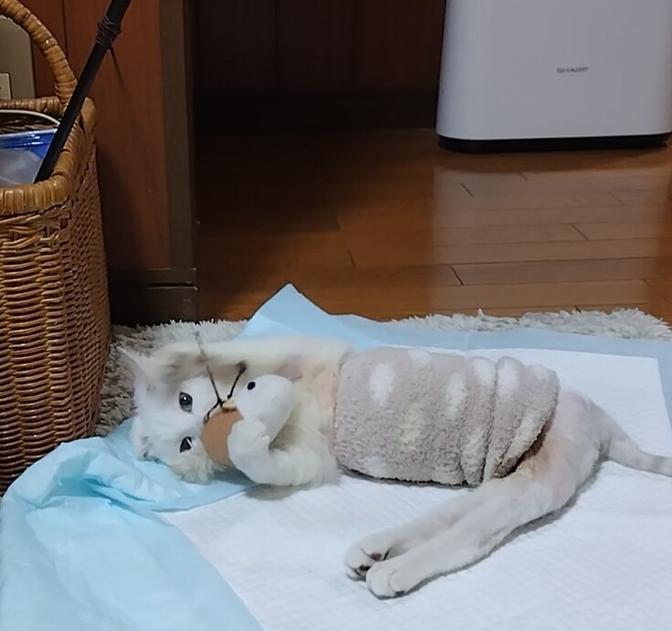 しっぽちゃん、ひとりでおとなしく遊んでくれるので、本当に助かっています🙌