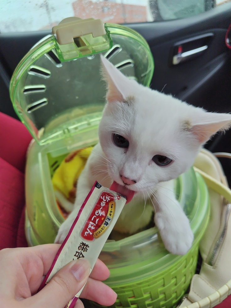 ▼今日は痛い処置もがんばってくれたので、ご褒美ミルクに加えてちゅーるも
