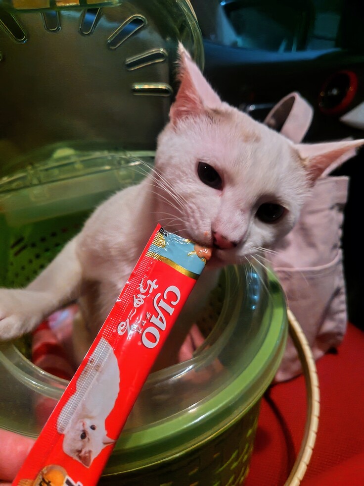 通院をがんばっているしっぽちゃんに、ご褒美ちゅーるをいただきました!本当にありがとうございます😭