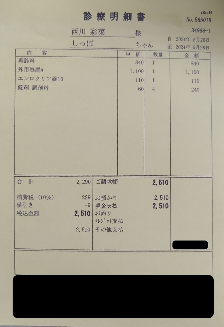 しっぽちゃん、朝おむつをかえたときおしっこの色がちょっと濃かったんですが、昨日おしっこ少なめだったからかな〜とのんきに考えておりまして。お薬もなくなるし、病院へ行ってきました🏥(前回の皮膚科の先生には、治療の継続は元々の病院で、と言われていたので)