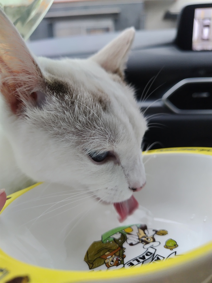 前回お水飲まなくて困ってて〜とか言っていたのですが、先生からもお水飲ませてくださいと言われ、試しにお水を置いてみたところ…めっちゃ飲む😳最近までちゅーる水でも溺れていたのに(ペロッ、鼻からガフッを繰り返していて😅)、めちゃめちゃ上手に飲めてる🥺喉乾いてたんだねごめんね〜さっそく常設いたしました🚰