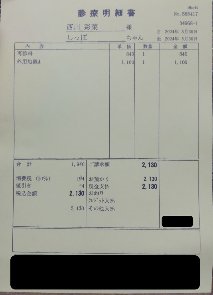 ちょっとバタバタしていてご報告が遅くなってしまったのですが、5/30,6/1としっぽちゃんの受診日でした。今は壊死の部分を溶かす薬を塗っていて、壊死の部分が取れるのを待っているところです。先生の予想より経過がゆっくりみたいで😔