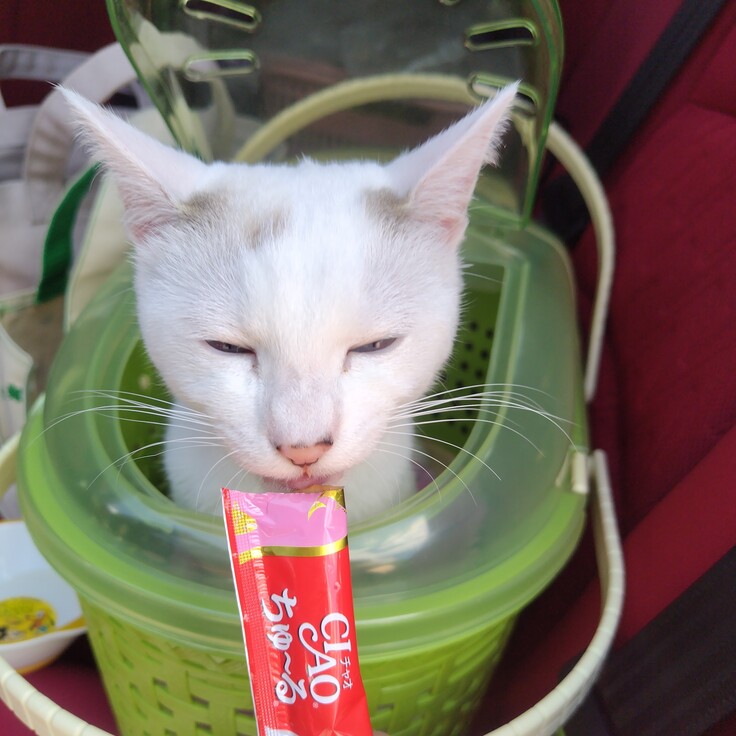 ご褒美ちゅーる、角度が悪くて眩しかったみたいでお顔が…😅