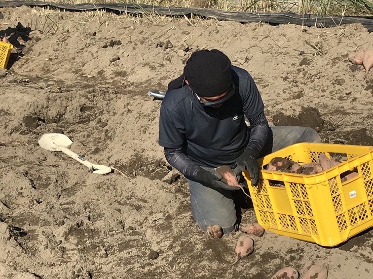さつま芋の収穫量は障がいのある人の工賃に直結しています。残念ながら芋ほり機が1台しかないため、追いつかない分はみんなで「手掘り」をしています。さつま芋に傷をつけないよう丁寧に一つずつ掘っていきますが、15tの収穫予定のさつま芋は8t程度しか掘りきれず、残りは霜が降りる12月頃に残ってしまいます。せっかく作っても7tを収穫できないので、もったいないの一言です。