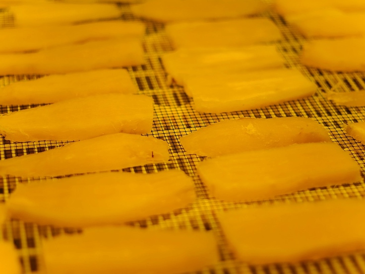熟成された黄金色の干し芋が出来上がります。とろけるようなやわらかい干し芋です。スタッフも障がいのある人も関係なく、アイディア出しや意見交換をしながら最高の干し芋を仕上げていきます。ひとりでは上手くできないこともたくさんの人の連携で作り上げることはできます。その人らしさを見つけながら、適材適所として作業を組み立てていきます。