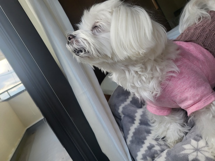 1日ほぼ寝て過ごすしずくは、時々外の空気を吸いたがります。窓を開けてあげると、くんくんしています。またお散歩に行ける日が来るように、頑張ろうね、しずく。
