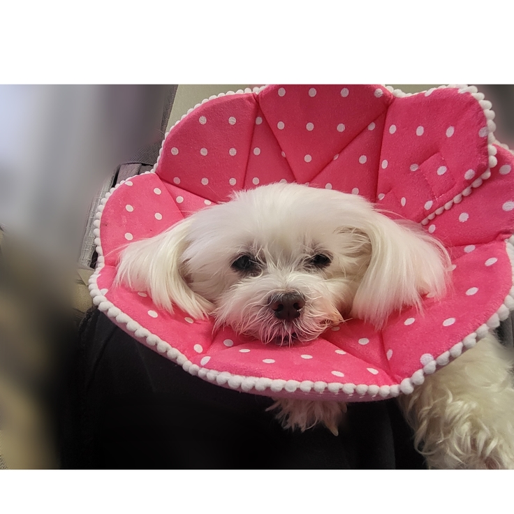 カラーをつけて1日ほぼ寝ています。