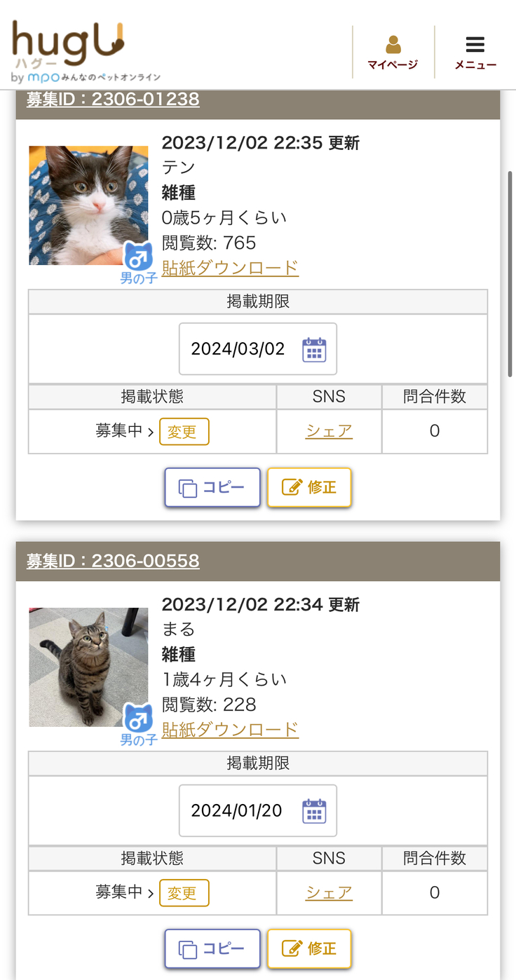預かった猫達は譲渡会や、里親サイトで里親さんを募集していました。