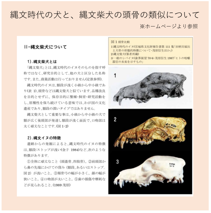 原種性の高い縄文柴犬は、その可能性を長きにわたり研究者の方々が骨格や動き方、体の各部位の特徴など、さまざまに研究を続けてこられました。遺伝子的にニホンオオカミと類似しているとも言われています。