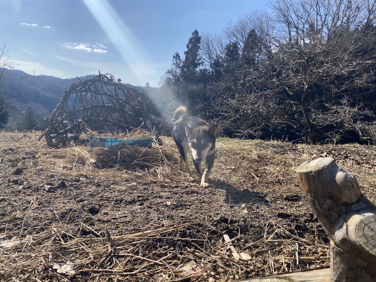 我が家に縄文柴犬がきて6年、野生動物に畑を荒らされることも激減し、敷地内ではニワトリたちも安心して暮らしています。