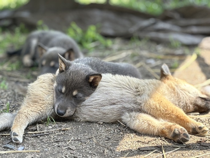 涼しい木陰で休んだり、兄弟で重なり合うように昼寝をしてみたり、まだまだかわいい仔犬たち。勇敢に育つ日が楽しみです!