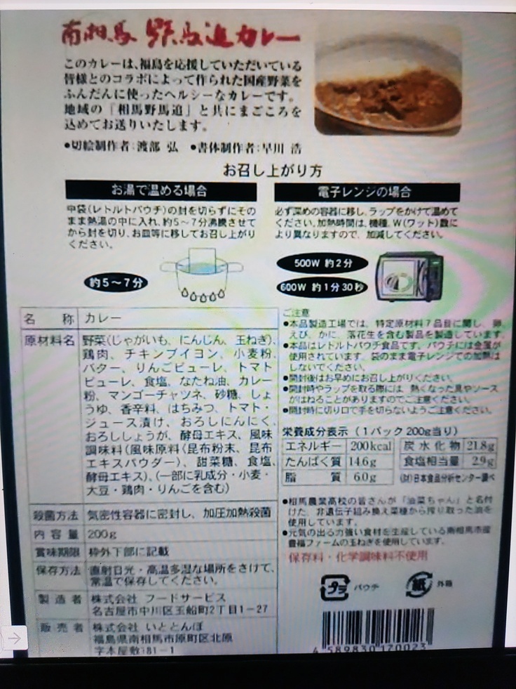 南相馬市特産品の詰め合わせにつきましては、南相馬市の食堂&農産物直売所「いととんぼ」様のご協力をいただいております。写真の南相馬野馬追カレーを基本とし、御支援いただきました金額により詰め合わせセット内容の個数を増やさせていただきます。野馬追カレーの原材料及び添加物などの食品表示はお届け商品のラベルに掲載されます。掲載している名称は南相馬市 食堂&農産物直売所いととんぼ様より許諾を得て掲載しております。