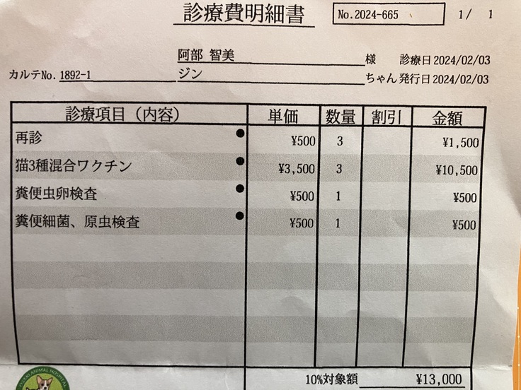 1週間前に病院で駆虫薬を飲ませていただき、昨日は駆虫薬で駆除出来ない他の虫がいないか検便をしていただきました。