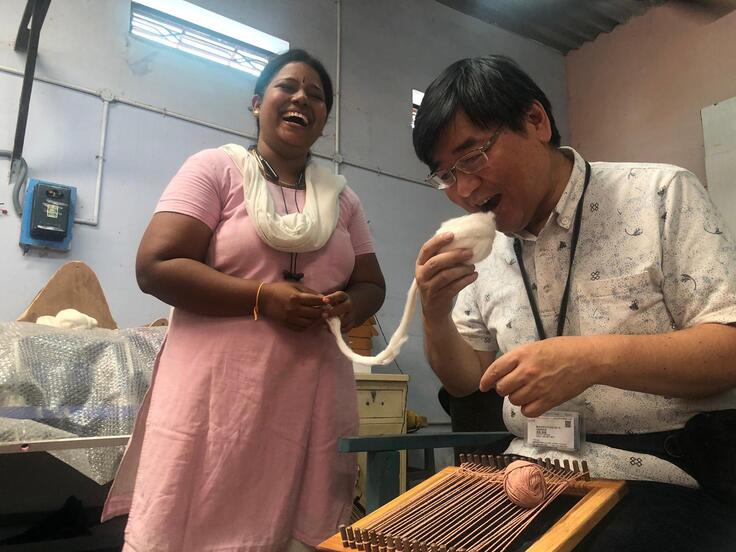 今回のプロジェクトでは、インドで実際に手作りで生地を作ります。
