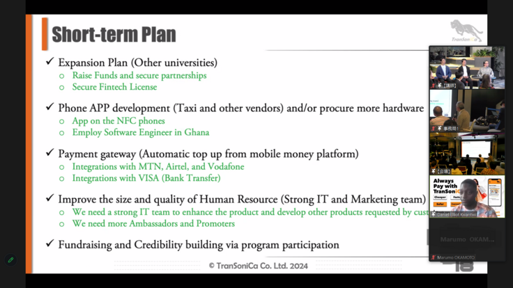 参加者はほぼ日本人、限られた短い時間の中でガーナから遠隔参加だったダニエル。