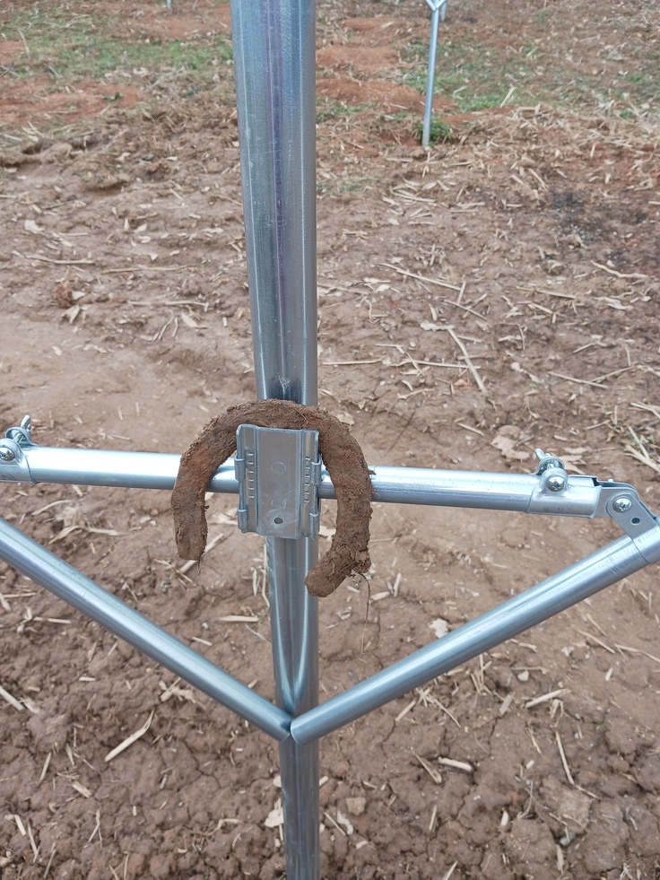 昨年造成した畑で苗木植え付けの準備をしていたら、馬の蹄鉄が掘り出されました。