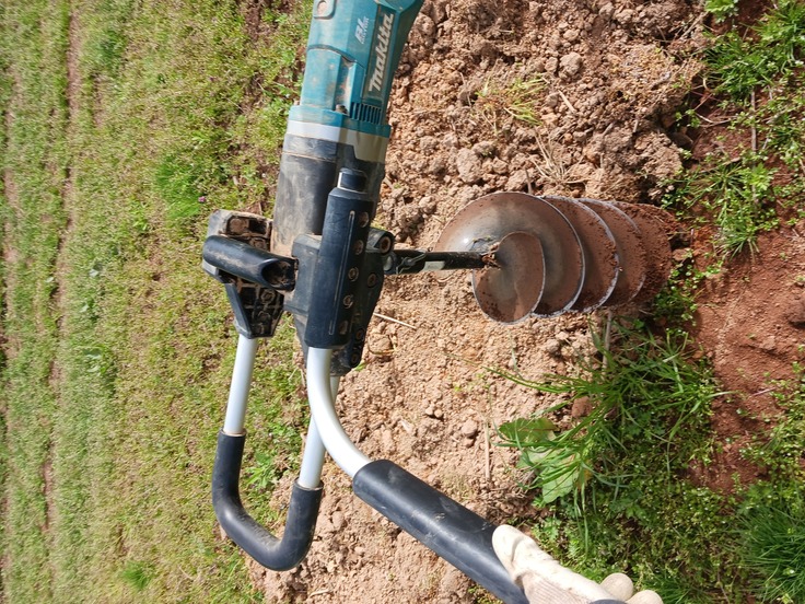 アースオーガーというデカいドリルで地面に穴を空けていく機械で、スコップで人力で掘るよりかなり楽です。