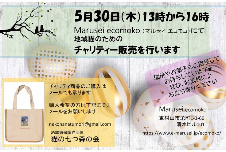 本日、東村山市久米川駅近くのエコモコさんでチャリティー商品販売会を行いました。