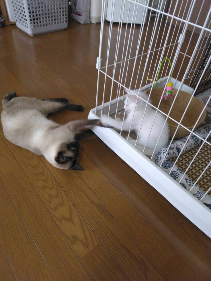 先に保護された白ちびちゃんとシャムミックスのまめちゃん