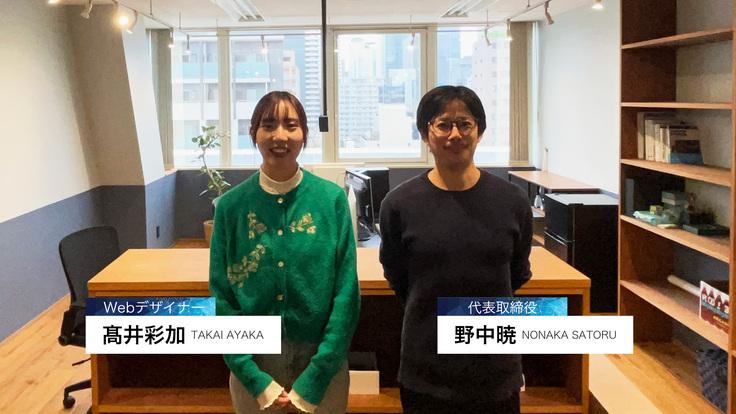 代表の野中暁(のなかさとる)、Webデザイナーの髙井彩加(たかいあやか)の2名が在籍しています。