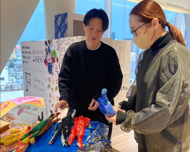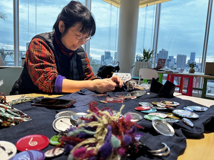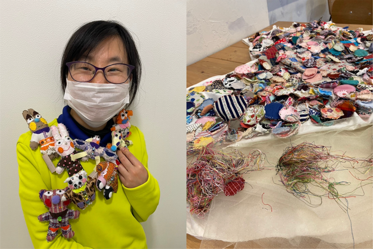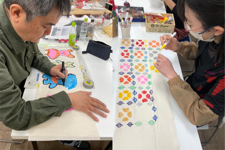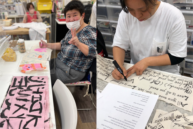 現場での制作も本腰を入れて着々と進んでます。 シブヤフォントの参加施設が普段作っている刺繍、ぬいぐるみ、パッチワーク、缶バッチ、織物、藍染など様々な材料をデザインと掛け合わせ、施設や専門の垣根を超えて協力し合いながらつくっています。