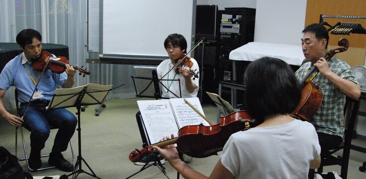 通りがかりの家から聞こえる楽器の音。 『まだ見知らぬその人と合奏ができたらどんなに楽しいだろうか。そんな連絡網はできないものだろうか。』 合奏相手でもあった最愛の娘を失った父親の素朴な願いが実を結んで、1974年6月にこの会は発足しました。累計会員数は4500名に達しますが、現在首都圏600名、関西圏200名、その他全国100名ほどが活動中で、40以上の月例会や発表コンサート、公開レッスンや室内楽合宿も企画されています。2008年にNPO法人、2021年に認定NPO法人。