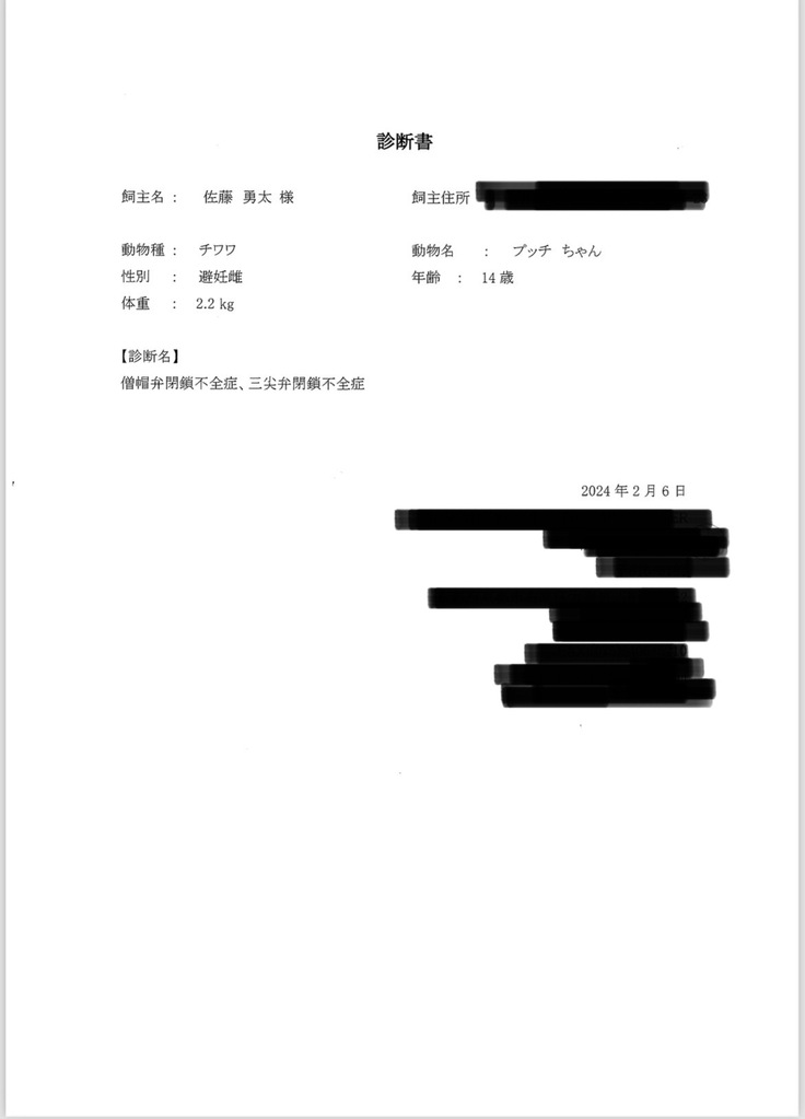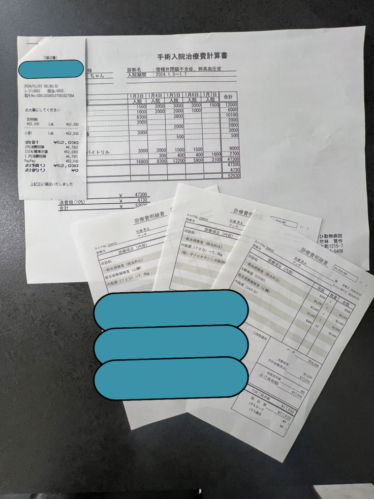ページ上に掲載している診断書や診療明細書などの資料は全て動物病院から掲載の許諾を得ております。