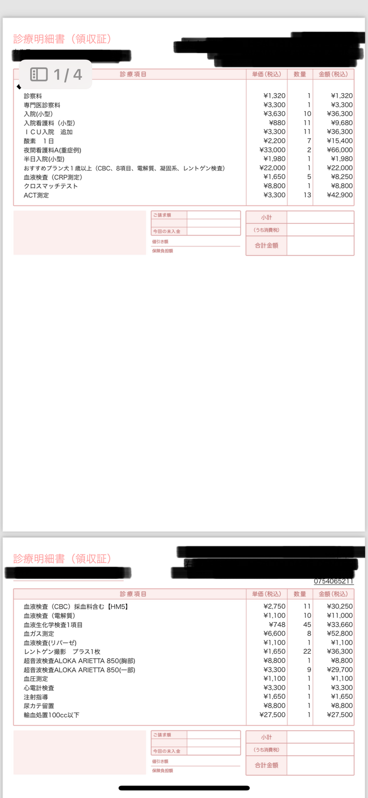 ※診療明細書(領収書)となっておりますが、見積書として頂いたものになります。