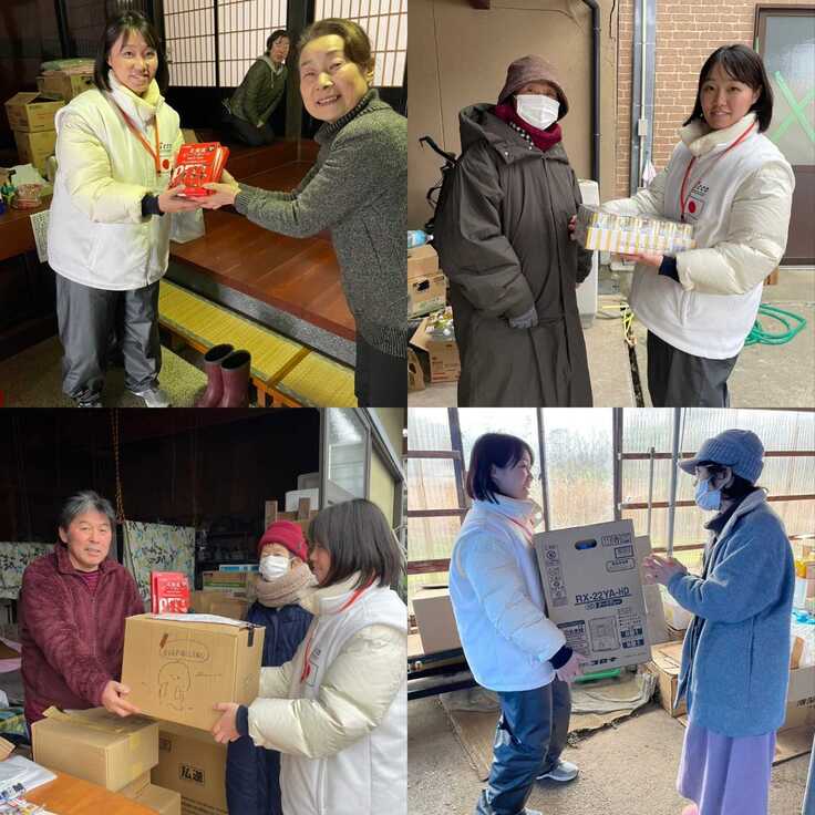水、健康茶、ビーフカレーレトルト、パックご飯、ストーブ、マットレスをお渡し。