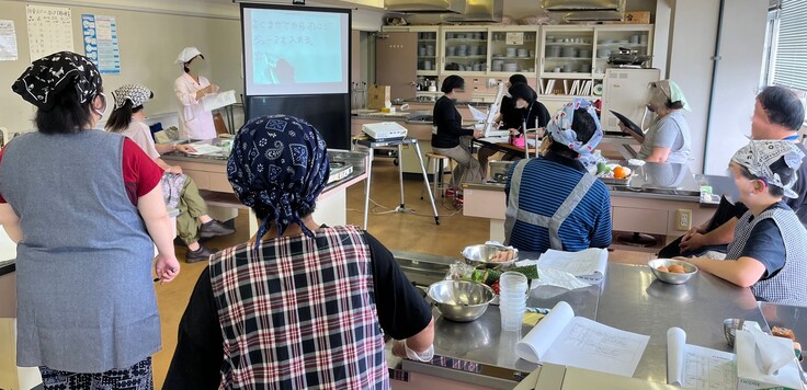要約筆記付きの管理栄養士の先生による講話の後、料理実習