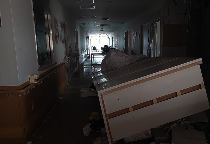 先週19日に入院患者様全員の転院を無事行えました。週末、現状確認を行うため誰もいなくなった院内へ行ってきました。この3週間の記憶も断片的にしか思い出せないくらいの毎日であらためて病院の姿を見た時に大きなショックと寂しさと悲しさがこみあげました。ただあの強震の中で入院患者様を守ってくれたのはこの建物だった事への感謝の思いも深まりました。