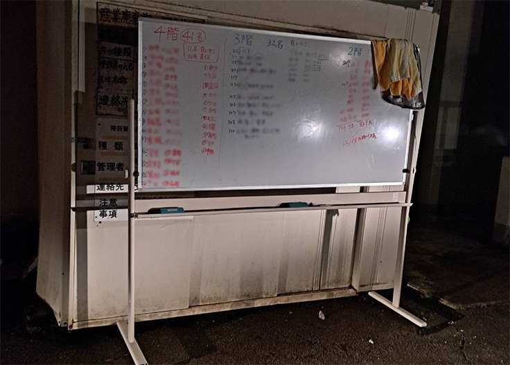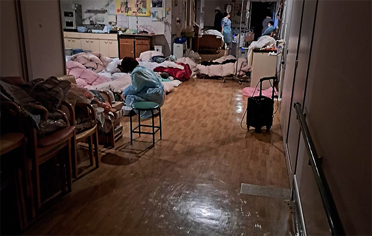 年末年始ということもあり平常時とは違う限られたスタッフでの対応が迫られました。地震発生からすぐに勤務外だったスタッフも自分の身の安全を最低限確認すると応援に向かおうとしましたが町内の道路が損壊していたため普通車では向かうことができず日没が近づき2次災害にならないよう苦渋の思いで一旦、安全な場所に戻り自体の経過を待つことになりました。