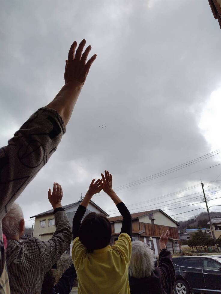 昨日、悪天候により中止されたブルーインパルスの能登上空飛行ですが本日、飛んできてくれました。賛否両論あるとは思いますが、グループホームぽかぽかの入所者様たちは皆さん空を見上げて喜んでくれていたのは私たちにとっては何よりも嬉しいことでした。