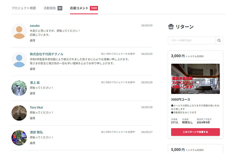【近況報告】3月29日 1000名もの方々からのご支援頂けました