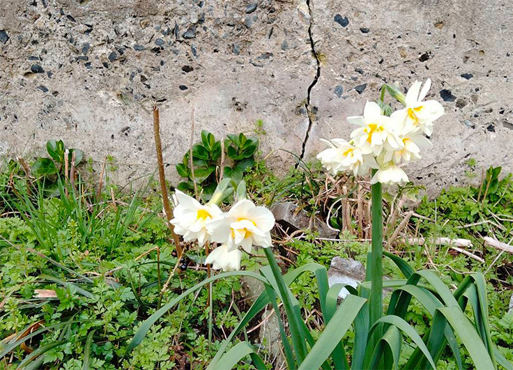 うつむき加減になりがちな毎日ですが季節は日々進んでいるようで庭先の花々は力強く咲き始めていました。私たちも顔をあげて前に進みたいと思います。