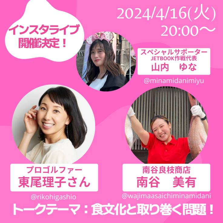 本日は、このプロジェクトにご支援と応援メッセージをいただいているプロゴルファーの東尾理子さんをお招きしてのインスタライブの開催が決定しましたので、お伝えさせていただきます。