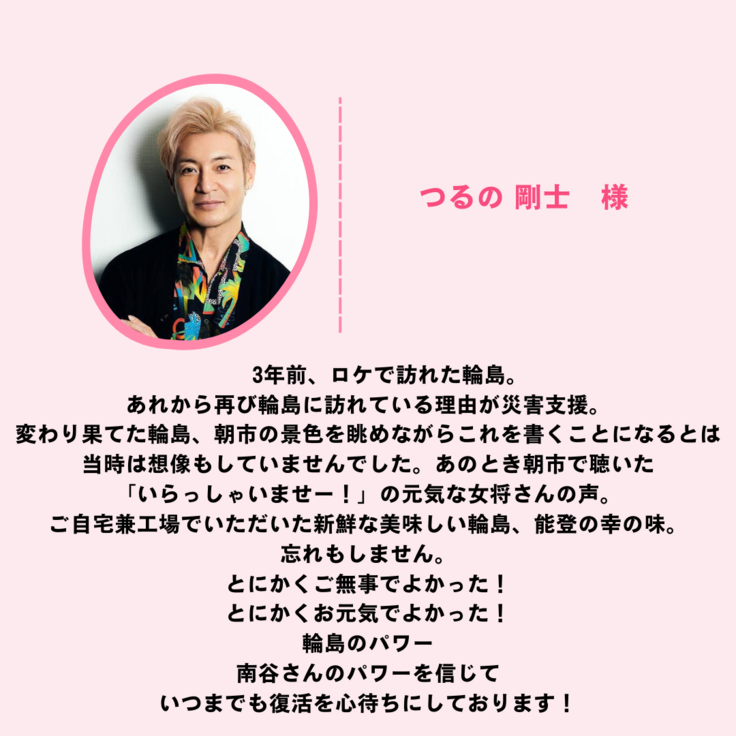 今日、つるの剛士さんに頂いたメッセージをご紹介させて頂きます!