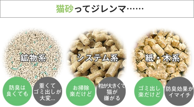 どうですか? 猫砂に関する悩みがかな~り網羅されていませんか?