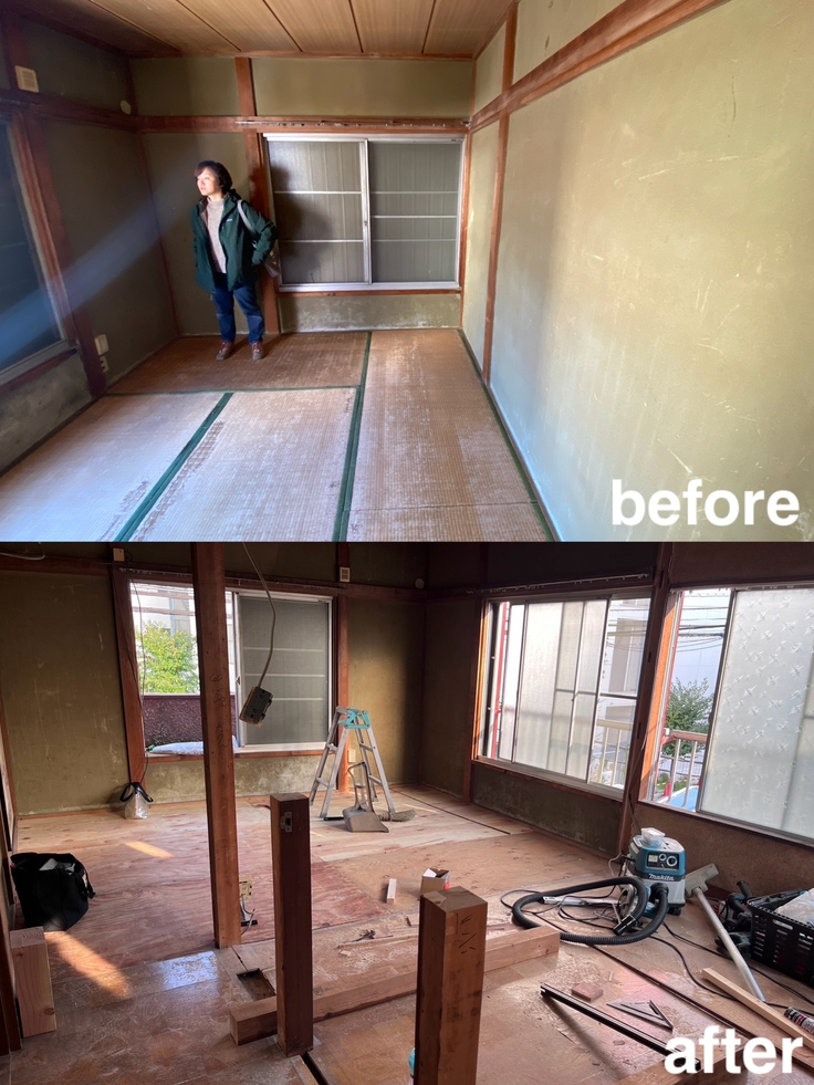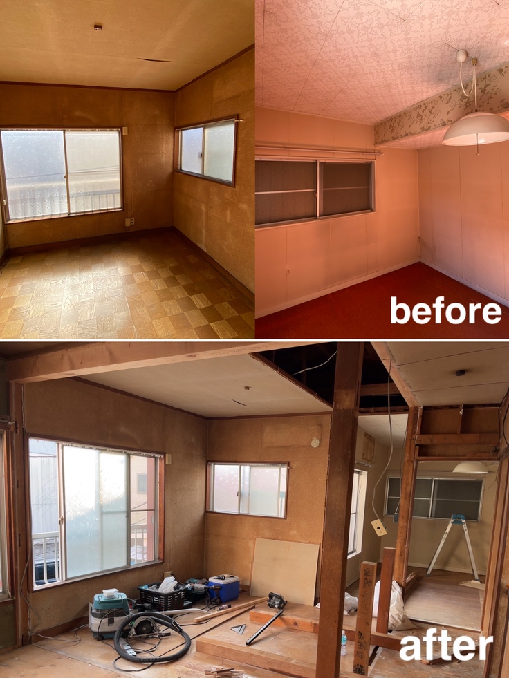 ▲before:左半分は真ん中の部屋(切れている左部分に先に取り払った和室との間の壁があります)、右半分は和室と反対側にある洋室です。