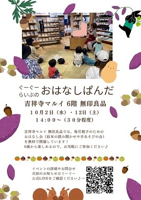 同じく10月12日の午後は、吉祥寺マルイの無印良品さんでおはなし会を行いました。