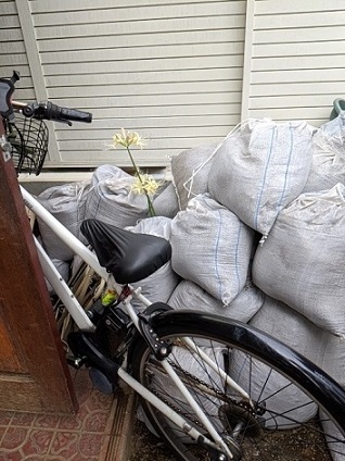 ちなみにこちらの土嚢、小さな庭のスペースにかなり土が積み上げられていたものをフラットにするために(9月26日『【進捗状況】引っ越し第3弾』参照)少しずつスコップで袋詰めをしたもの。
