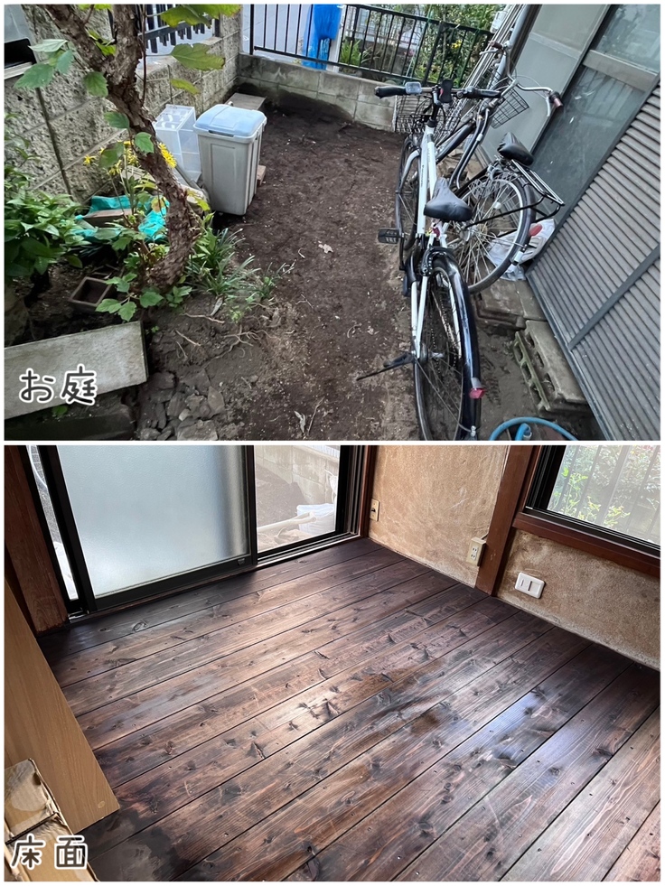 【進捗報告】庭の整備と床塗り