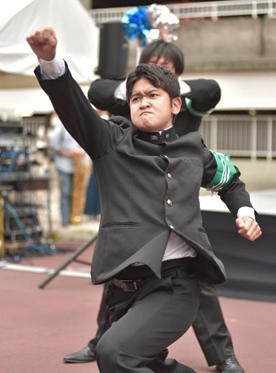 団全体の先頭に立ち、応援団を引っ張っていく存在で、まさに花形そのもの!学ランを身にまとい、センターで力強く指揮を振る姿や、迫力満点の太鼓を力強くたたく姿はまさに圧巻です。くじけるようなことは決してなく、応援団の"リーダー"として、その風格と威厳を持ちつつ、団員に活気と奮起をもたらしています。