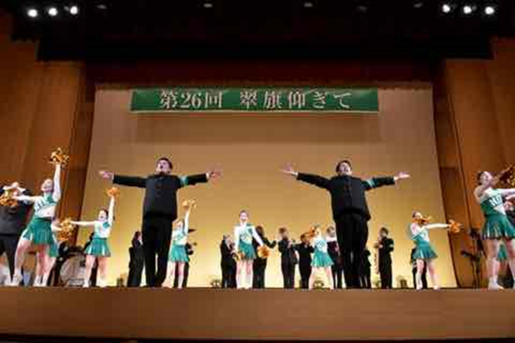 また三重大学応援団では、毎年夏に「チアバンステージ」、毎年秋に「翠旗仰ぎて」というステージを開催させていただいております。「チアバンステージ」はブラスバンド部とチアリーダー部が主体となったステージであり、「翠旗仰ぎて」は各年度ごとの集大成となる最後のステージです。