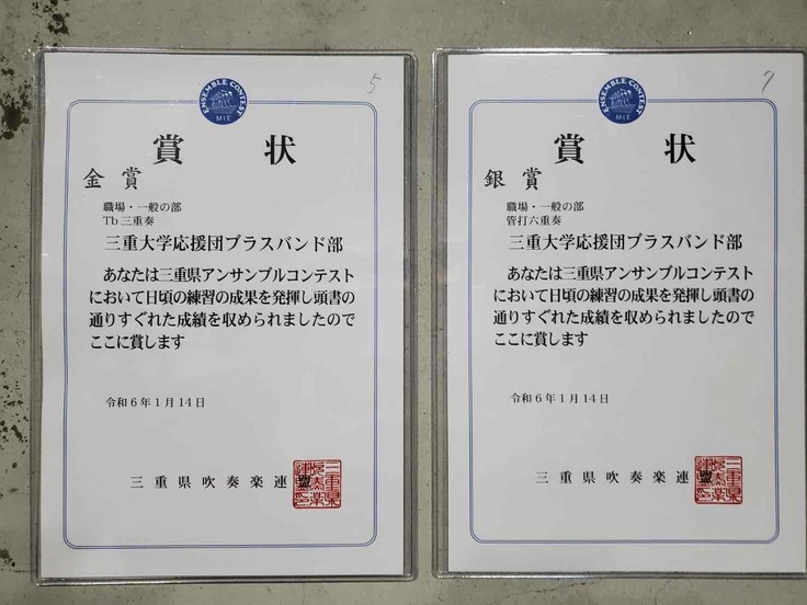 ・アンサンブルコンテストでは、トロンボーン三重奏(金賞)、管打六重奏(銀賞)