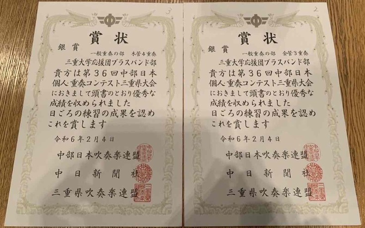 ・個人重奏コンテストでは、金管三重奏(銀賞)と木管四重奏(銀賞)